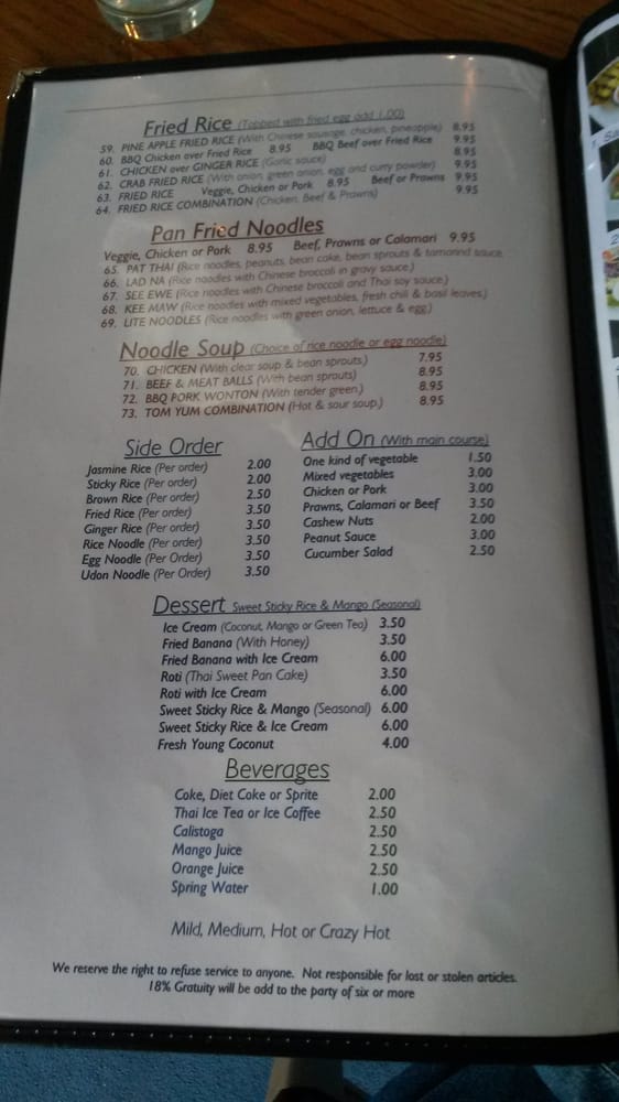 Thai Stick is a casual dining spot in Millbrae, CA, offering a variety of Thai dishes with a focus on appetizers, salads, and soups. The menu boasts options like Chicken Satay, Egg Rolls, and Tom Yum Soup, all carefully prepared with flavorful ingredients. This restaurant is perfect for those looking for vegetarian options, with many dishes available to cater to different dietary preferences. The cozy atmosphere and friendly staff make it a great choice for groups, families, or even a casual lunch or dinner. With convenient amenities like reservation options, delivery, and takeout, Thai Stick provides a seamless dining experience. Whether you're a Thai cuisine enthusiast or a newcomer, the diverse menu and welcoming ambiance at Thai Stick are sure to leave a lasting impression.